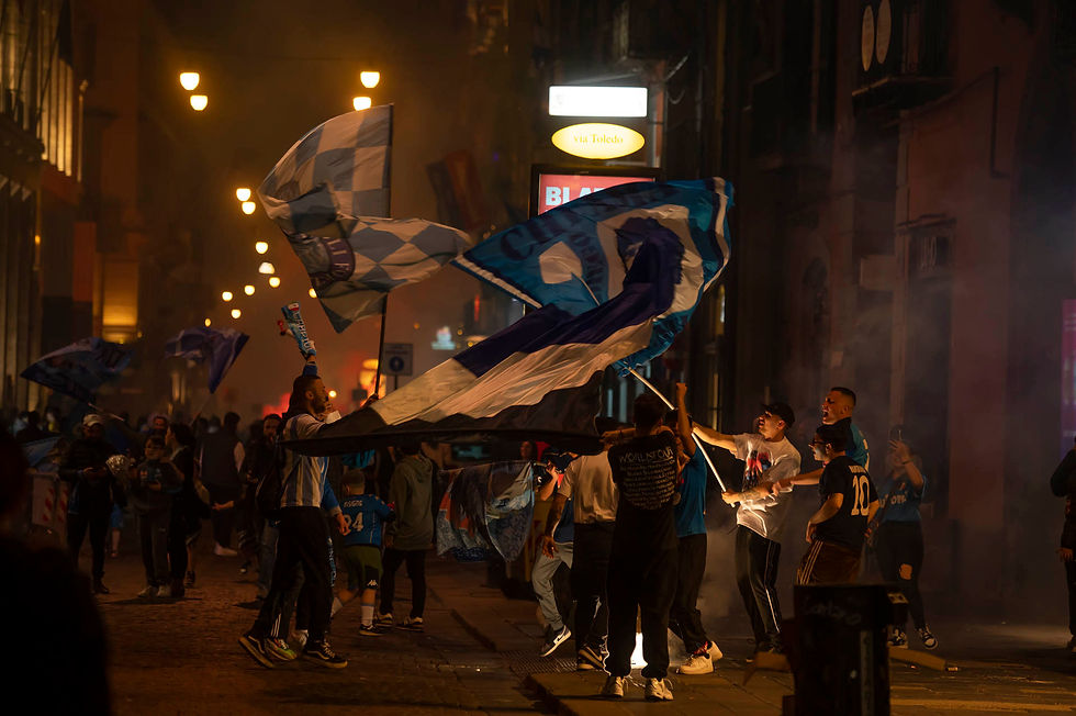 Le immagini della festa nei quartieri del centro storico della città e davanti allo stadio Maradona .